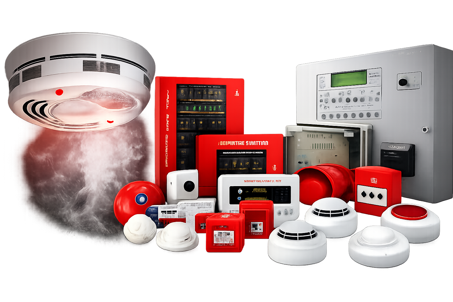 We offer complete fire safety solutions including Fire Alarm Systems, Fire Suppression Systems, Fire Fighting Systems, Fire Extinguishers, Exit Signage, installation, and AMC services.